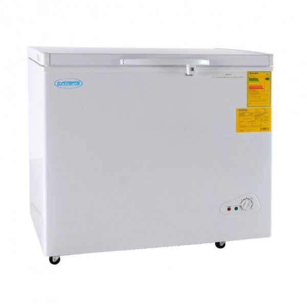 Este congelador ofrece gran capacidad y eficiencia energética, con un diseño práctico para facilitar el almacenamiento y la movilización de alimentos.