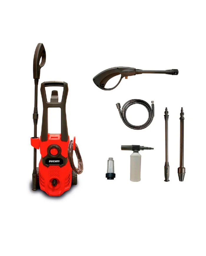 - La Hidrolavadora eléctrica Ducati DPW1400S es la solución perfecta para quienes buscan mantener sus espacios exteriores siempre limpios y relucientes sin esfuerzo. Con un diseño compacto y moderno que facilita su uso y almacenamiento, esta potente herramienta ofrece un alto rendimiento gracias a sus 1400 W de potencia y su presión máxima de 1600 PSI, capaces de eliminar la suciedad más difícil en segundos.