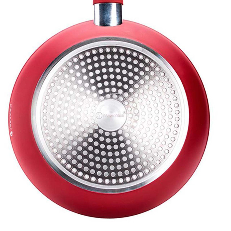Fabricadas en aluminio forjado con antiadherente cerámico. Úselos en cocinas a inducción, gas o eléctricas. Diámetros 20, 24 y 28 cm. Rojo.