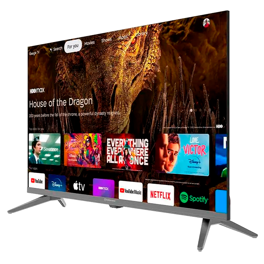 El Indurama 32TIKHD es un Smart TV de 32 pulgadas que combina un diseño ultra delgado con funcionalidades avanzadas para ofrecer una experiencia de entretenimiento envolvente. Equipado con el sistema operativo Google TV, te brinda acceso directo a tus aplicaciones favoritas como YouTube, Netflix, Amazon Prime Video y Google Play, todo desde una interfaz intuitiva y fácil de usar.